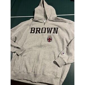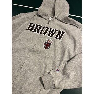 RARE Brown University Champion Full Zip Hoodie Sweatshirt Gray XL Ivy College