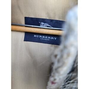 RARE Burberry Nova Check VINTAGE Midi Fur Trim Long Trench Coat size 8