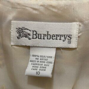 This is a beautiful Burberry silk vest with sun celestial print on it. It has 5 buttons down the front and a button belt along the lower back to adjust size. There are no snags, tears, or stains on the inside or out of vest. It measures approximately 19 from the shoulder to the bottom and approximately 16 inches across the chest laying flat. It will definitely make a statement piece. From a non-smoker household.