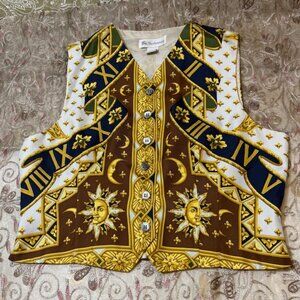 RARE Burberry Vintage Silk Vest Incredibly Sun Celestial Print Sz 10