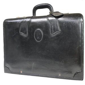 RARE CARTIER 2C Logo Briefcase Travel Hand Bag Leather Black GHW Vintage 67FA376