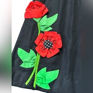 RARE CATHERINE CARR 70s VINTAGE Black Fit & Flare Red Flower Dress size 6