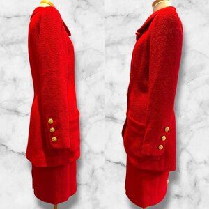 RARE CHANEL Runway Tweed Jacket Skirt Set Iconic Wool Blend Suit Set Red 38