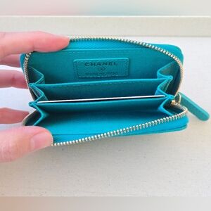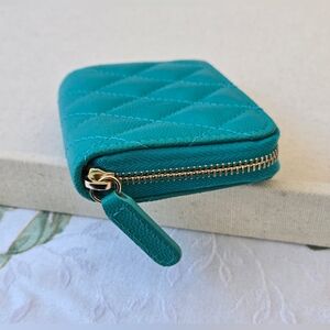 RARE CHANEL Teal Caviar Quilted Zip-Around Card Holder