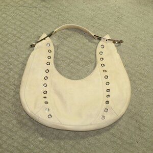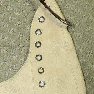 RARE CHIC!!! Furla Beige Pebble Leather Silver-Toned Grommet Shoulder Bag