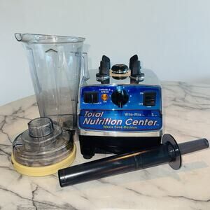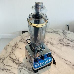 Introducing the Vitamix Variable Speed VM0103 Blender, the perfect addition to your kitchen. This 64 oz Total Nutrition Center Blender is an electric appliance that can liquefy, blend, chop, crush ice, and grind nuts, fruit, sauce, frozen drink, vegetable, and smoothie. It has 10 settings/programs and 1 blade. The blender is RARE CHROME FINISH in color and has a locking lid, high-speed feature, and adjustable settings.