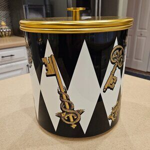 This is an AUTHENTIC RARE FORNASETTI GOLD CHIAVI and ROMBI BLACK and WHITE ICE BUCKET. VERY RARE! This is NO LONGER AVAILABLE. LOVELY and CLASSIC design on this ice bucket! This is made in Italy. This was purchased directly from Bergdorf Goodman. CLASSIC and WONDERFUL addition to any bar or collection, gift for that someone special, or whatever you desire!! Hand washing is recommended. This is NOT Dishwasher safe nor microwave safe. Comes from a non-smoking home. Comes in the original box. Pictures of actual item. New without sticker.