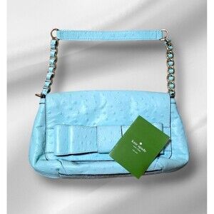 Kate Spade Vintage New York Flap Crossbody Ostrich Light Robins Egg Blue / Mint / Pistachio Purse in PERFECT CONDITION