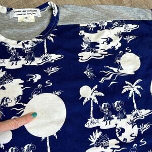 RARE COMME des GARÇONS Blue Hawaiian Hula Print Wide Fit T-Shirt Women’s