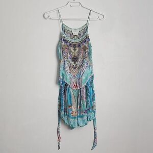 RARE! Camilla Blue Garden State Shoestring Strap Playsuit Romper XS b114
