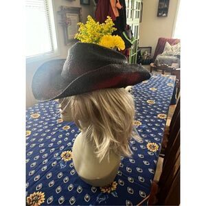 This is a super cool find! From Caribe golf course in Puerto Rico, this is a bread and black hombre cowboy hat made of straw. Looks adorable on a few little dings in the straw can be touched up. I’m sure size medium inside measurement is approximately 22”