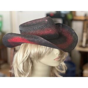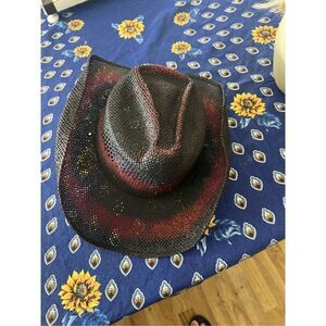 RARE Caribe Golf Perto Rico Vintage Straw Black And Red Cowboy Hat M
