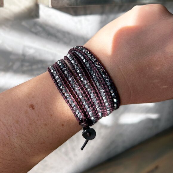 Enjoy this gently pre-loved Chan Luu Swarovski 5-Wrap Bracelet with Oxblood Maroon Leather MSRP $395