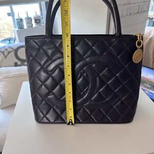 The item comes with a Gold medallion zipper pull, and is a very sleek and luxurious alternative to the caviar medallion tote. The Medallion Shopper is one of the most sought-after classic totes within the Chanel familythat stopped production in 2013.