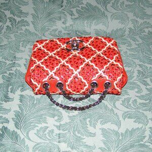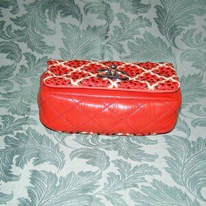 RARE Chanel Red Mini Patent Leather Woven Stitch Tweed Flap Bag