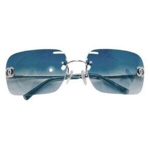 RARE Chanel Vintage Sunglasses Rhinestone Crystal CC Logo Rimless Gradient Blue