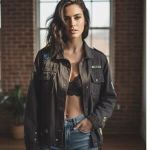 Field Jacket, Peloton Patches Jacket, Embroidered Patches, Collectible Jacket, Outerwear, Snap Button Jacket, Rare Peloton, Utilitarian Chic, Military-Inspired, Athleisure Crossover, Moto Edge, Biker Jacket, Patchwork, Statement Outerwear, Casual Cool