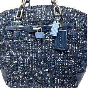 RARE Coach Chelsea Bouclé Mersin Tweed Shoulder Tote Navy Blue Style 17813 $398