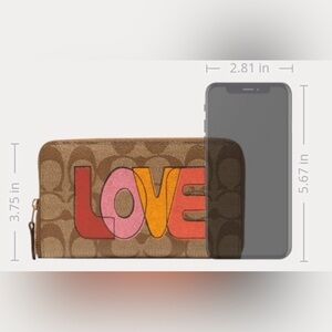 RARE Coach Medium Id Zip Wallet In Signature Canvas With Love Print Purses Bag