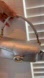 Stylish silver handbag featuring elegant gold accents. Perfect for any occasion.