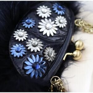 RARE Coach Poppy Jewel Frame Bag with feathers and patent fabric trim.