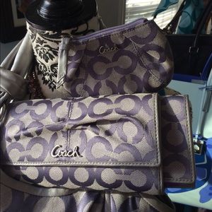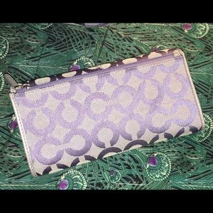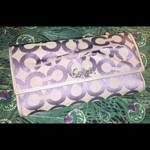 This is the matching wallet for the Parker handbag in silver and lilac. It is hard to find the trifold wallets with a separate checkbook cover. This is the signature cloth print. Please make an offer!