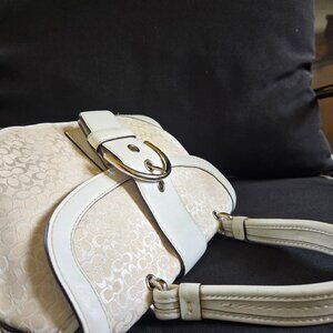 RARE Coach Y2K Soho Handbag: Ivory SigC Jacquard & White Leather Trim - 6349