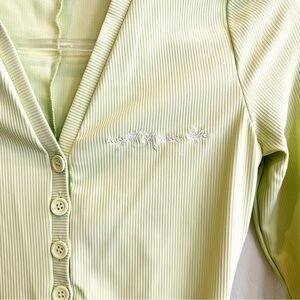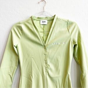 RARE Collective Official ‘Night Of Your Life’ ribbed onesie romper in “pistachio” green. Nylon blend fabric that is very flattering and has a compression feel to it for figure slimming. One tiny mark on the front (see pic) but pretty sure it will come out in wash. This color is no longer sold. Excellent condition overall.