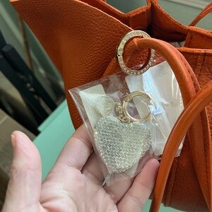 Please read Portland Leathers description of their leather and how it varies which makes it unique and amazing! Very boho and chic! Comes with a removable rhinestone ring to attach bag charms and comes with a brand new sparkly heart bag charm.