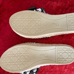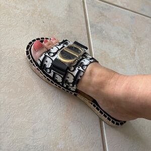 RARE DIOR Black and White Monogram Espadrille Sandals With gold CD Logo Size 41