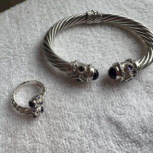RARE David Yurman Studio Sterling Silver Amethyst Cable Cuff + Ring Set