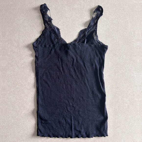 RARE Denim & Supply Ralph Lauren Cotton Lace Trim Camisole as seen on Elena Gilbert (Nina Dobrev) in The Vampire Diaries season 4 episode 15 (2013). Same style and brand but alternate color. Elena's is cream; this one is navy. From my personal collection, but I've finally found the cream one to replace it. Extremely rare in any color.