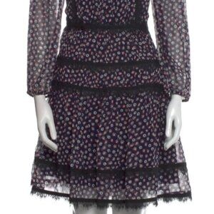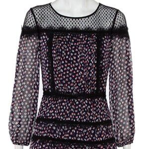 RARE Diane Von Furstenberg Navy Printed Silk Tulle Paneled Jamie Dress M $191