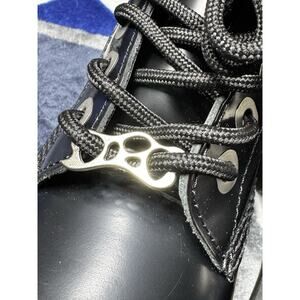 This unique design features both functional zippers and traditional laces, plus custom metal hardware including knuckle-duster lace keepers and branded zipper pulls. Built with signature AirWair™ cushioned soles, Goodyear welt stitching, grooved sides, and smooth black leather upper. Model 32003001 – a bold twist on a classic.