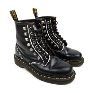 RARE Dr. Martens Studded Black Rolled Vintage Smooth High Top Boots Women's 6