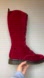 • Red lace-up boots