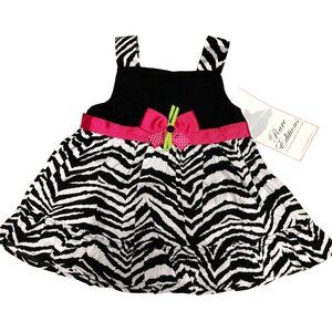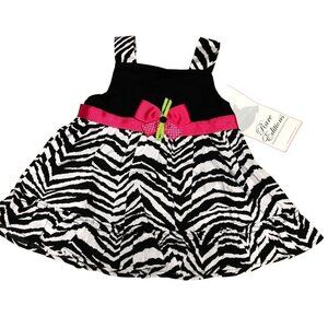 Sleeveless zebra print Dress with pink bow and ruffle hem
