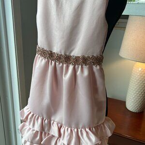 RARE EDITIONS Girls Size 6 Pink Satin Dress with Beaded Tie