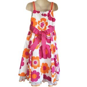 RARE EDITIONS Pink Orange & White Sleeveless Floral Dress - Girl's 6