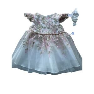 RARE EDITIONS, SIZE 6-9 MONTHS WHITE EMBELLISHED DRESS, 2PC