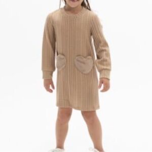 RARE EDITIONS TAN LONG SLEEVE SWEATER DRESS WITH HEART POCKETS