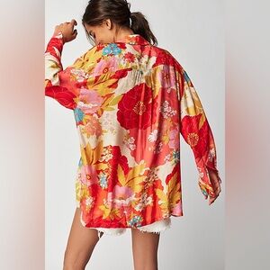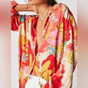 🦄RARE🦄 EUC SPELL x Free People Tyler Floral Button-Down in CHILI, Size XL