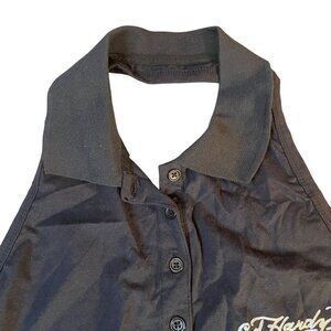 NWT Women's Vintage Ed Hardy Y2K Halter Style Collared Button-Up Backless 100% cotton graphic tattoo print t shirt.