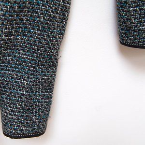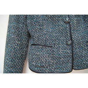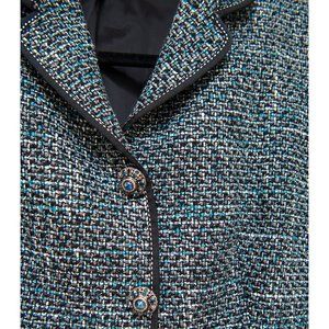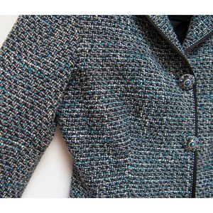 RARE Gorgeous teal-white-black tweed wool blend jacket from Elie Tahari. Size S/P, in excellent preowned condition. Some minor pilling on sleeves (see photo).