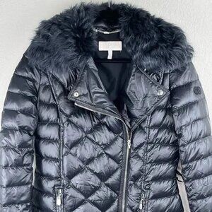 RARE Escada Sport Genuine Fur/Shearling Biker Down Puffer Jacket Coat EU 36 US 6