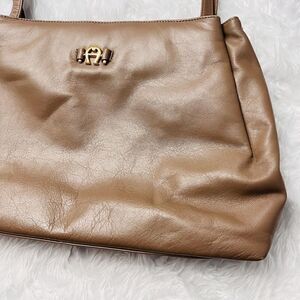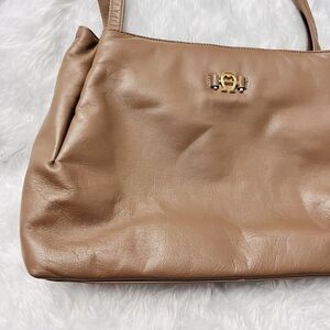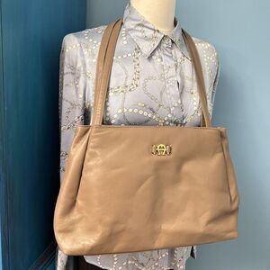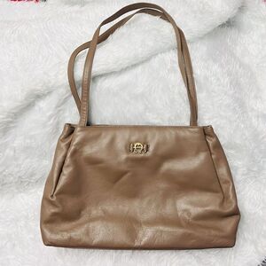RARE Etienne Aigner Shoulder Bag Soft Cowhide Leather Taupe Tan Gold Y2K Vintage