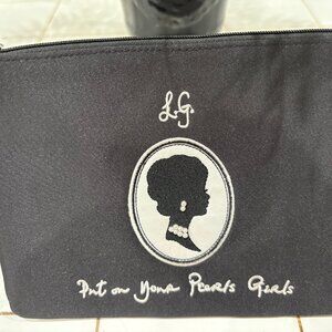 RARE FIND! NWOT - Iconic vintage black satin envelope clutch from British designer, Lulu Guinness. Part of the “Glamour Girl” series of embroidered bags, this is the “pearls” in the series, “Glamour Girl – Put On Your Pearls Girls.” The writing is stitched in silver metallic thread. The women is wearing mini faux pearl earrings and necklace. Dubbed by Vogue magazine as “ladylike with a twist,” Lulu Guinness bags have developed a cult following and are collected and worn by celebrities such as Kate Moss, Bella Hadid, and Sienna Miller. In mint condition, smoke-free home.