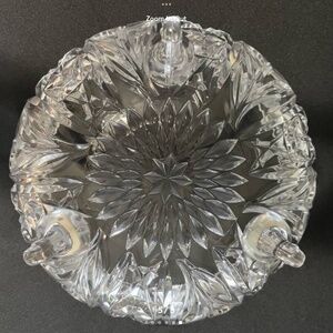 Beautiful Vintage Cut Crystal Bowl, a mid 1970's heavy large Crystal three footed fruit bowl or table centerpiece.