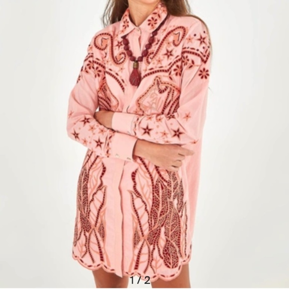 RARE Farm Rio Embroidered Western Dress In Light Pink