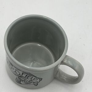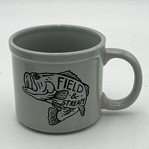 Enjoy your morning coffee or soup in this rare Field & Stream hunting coffee mug. The gray ceramic & porcelain mug features a fish pattern, perfect for any sports enthusiast.